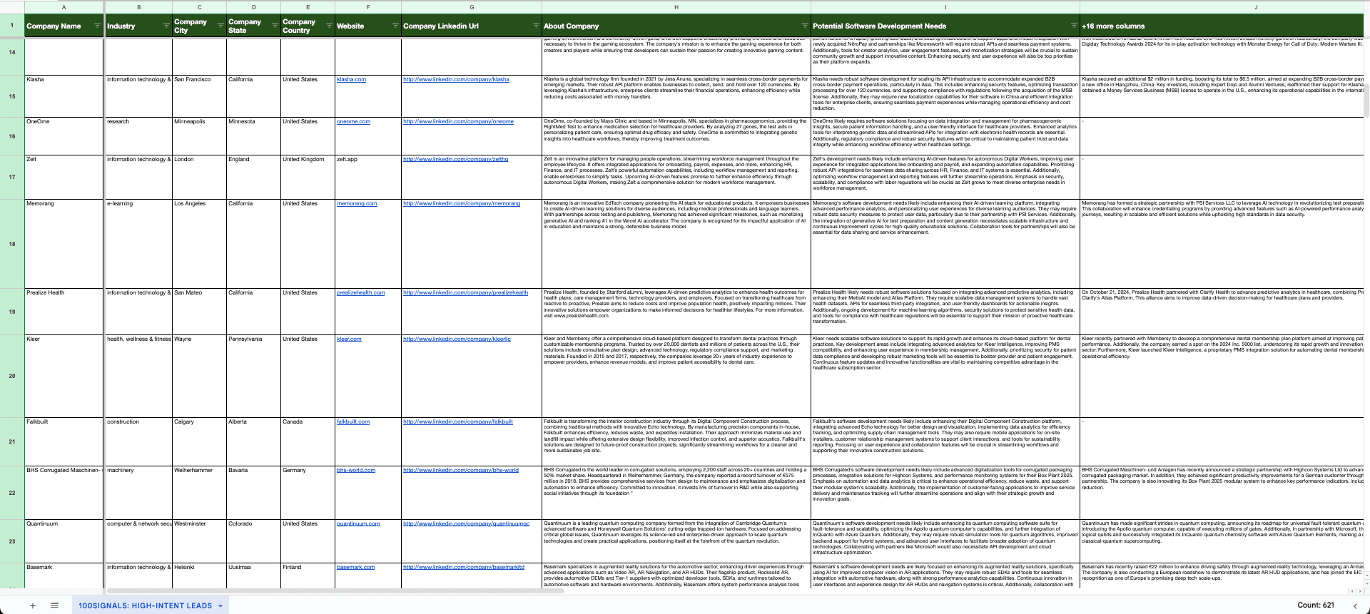 Every month, we curate and triangulate data from 15+ sources to identify leads that are the most likely to outsource dev work within the next 90 days.